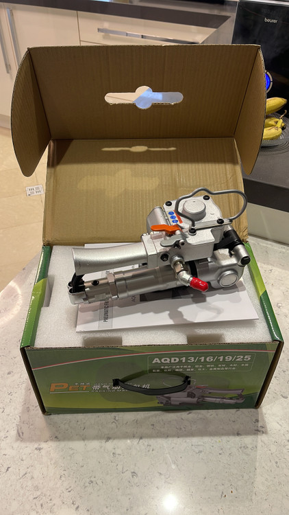 این نوع تسمه کش با نیروی محرک باد کار می کند و به برق و باتری نیاز ندارد و فقط یک شیلنگ باد به آن وصل می شود. تسمه کش پنوماتیک با توان کشش 3500 نیوتن مناسب جهت تسمه کشی پالت های چوب و سنگ و کاشی و ام دی اف و... می باشد. با داشتن بدنه آلومینیومی وزن سبکی در حدود 3.8 کیلوگرم دارد که کارکردن و جابجایی دستگاه را ساده می کند. سایز تسمه مورد استفاده 13 تا 19 میلیمتر از جنس pp و pet می باشد.
